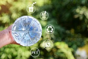 Unlike polyester, recycled polyester uses PET as the raw material. This is the same material that is used in clear plastic water bottles, and recycling it to create the fabric prevents it from going to landfill. This yarn is then baled, dyed and knitted into polyester fabric.